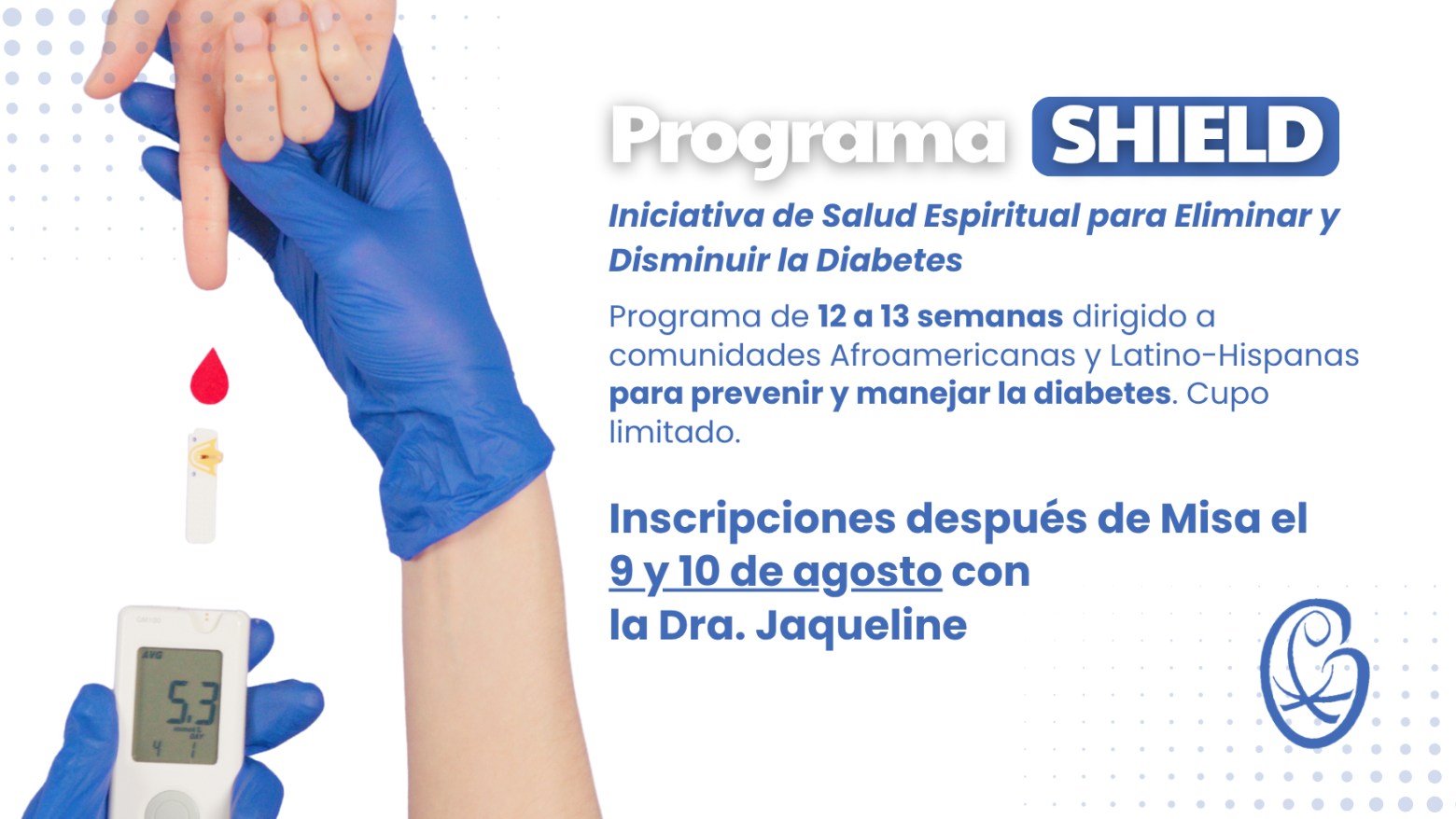 SHIELD (Iniciativa de Salud Espiritual para Eliminar y Disminuir la Diabetes) es un programa GRATUITO de 12 semanas que combina fe, educación en salud y hábitos saludables para prevenir o controlar la diabetes, diseñado especialmente para la comunidad latino-hispana.