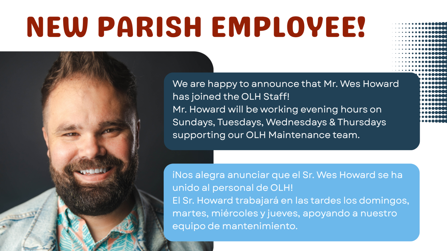 El Salón de Niños de OLH entrará en una pausa temporal en referencia a las lecciones y manualidades. Los estantes estarán surtidos con libros para ayudar a los niños a explorar su fe, su vida de oración y la Biblia. Habrá “bolsas para la iglesia” en el salón. Le invitamos a llevar una a casa y llenarla con artículos que ayuden a los pequeños a mantenerse atentos durante la Misa (por favor, solo una por familia). ¡Gracias por todo su apoyo durante este año! — Sarah Eades